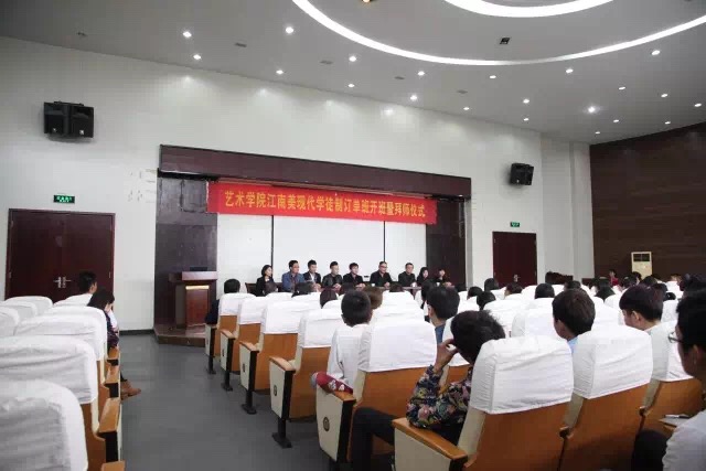 仪式上,余校长致辞,对订单班全体师生提出几点要求:一是积极推进招生与招工一体化。二是深化工学结合人才培养模式改革。三是加强专兼结合师资队伍建设。四是形成与现代学徒制相适应的教学管理与运行机制。并希望校企双方深度合作发展、实现互利双赢,共同打造出精品现代学徒制订单班。随后,杨昌蓉处长与江南美董事长王畴广共同为企业师傅颁发聘书。学生代表与学校、企业签订三方协议。最后,江南美装饰设计订单班的学徒代表敬礼献茶,举行拜师仪式。